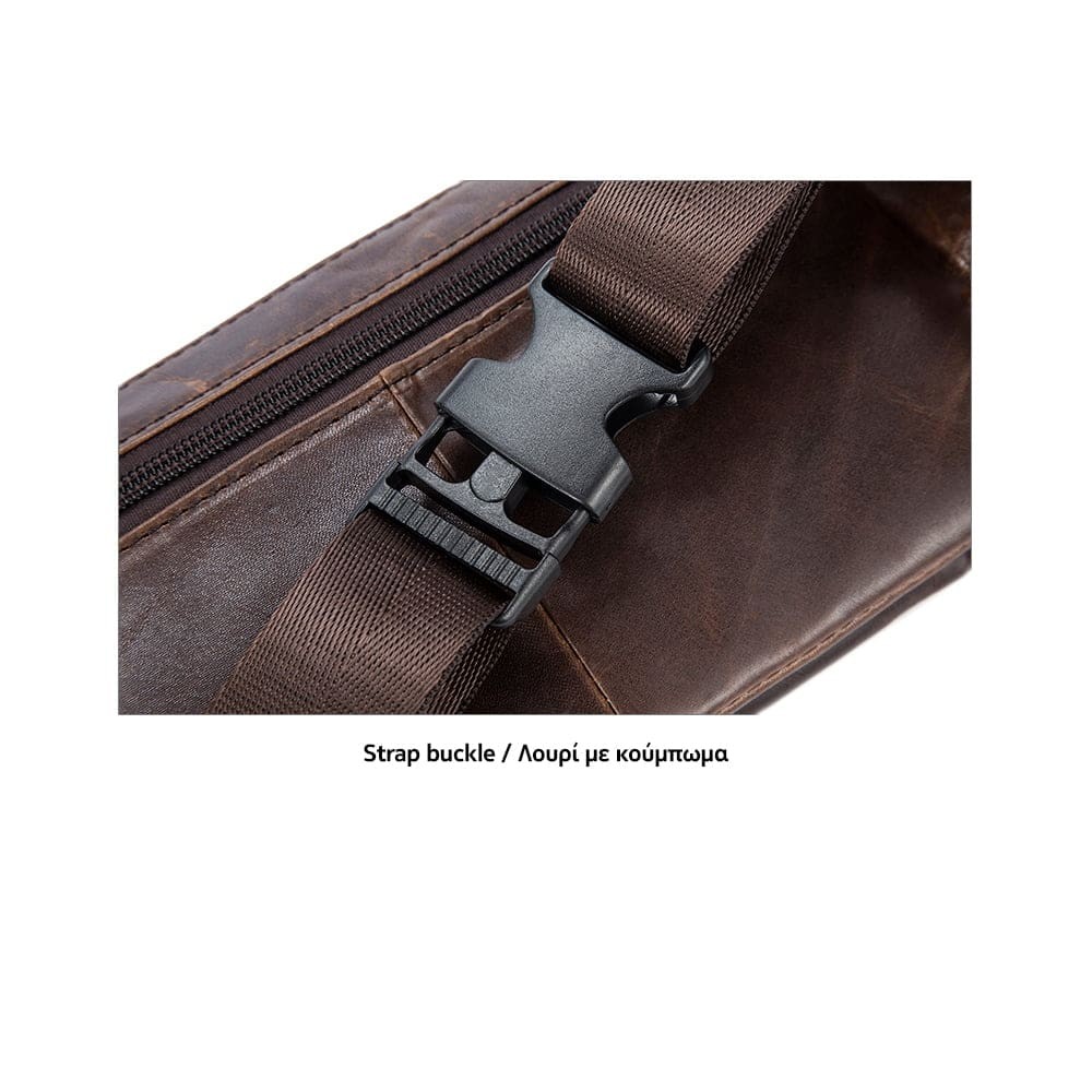 ▶ Αναβαθμίστε το στυλ σας με αυτό το γνήσιο δερμάτινο τσαντάκι μέσης Casual. Κατασκευασμένο από εξαιρετικής ποιότητας γνήσιο δέρμα με ειδική επεξεργασία διετούς παλαίωσης, αυτό το τσαντάκι θα κλέψει τις εντυπώσεις σας με το μοντέρνο σχεδιασμό του. Με 7 τσέπες, από τις οποίες 6 κλείνουν με φερμουάρ και 1 είναι ανοιχτή με καπάκι, μπορείτε να οργανώσετε τα προσωπικά σας αντικείμενα με άνεση και ευκολία. Επιπλέον, διαθέτει εσωτερικές θήκες και χωρίσματα με φερμουάρ για να αποθηκεύσετε το πορτοφόλι, το κινητό σας και τις κάρτες σας.