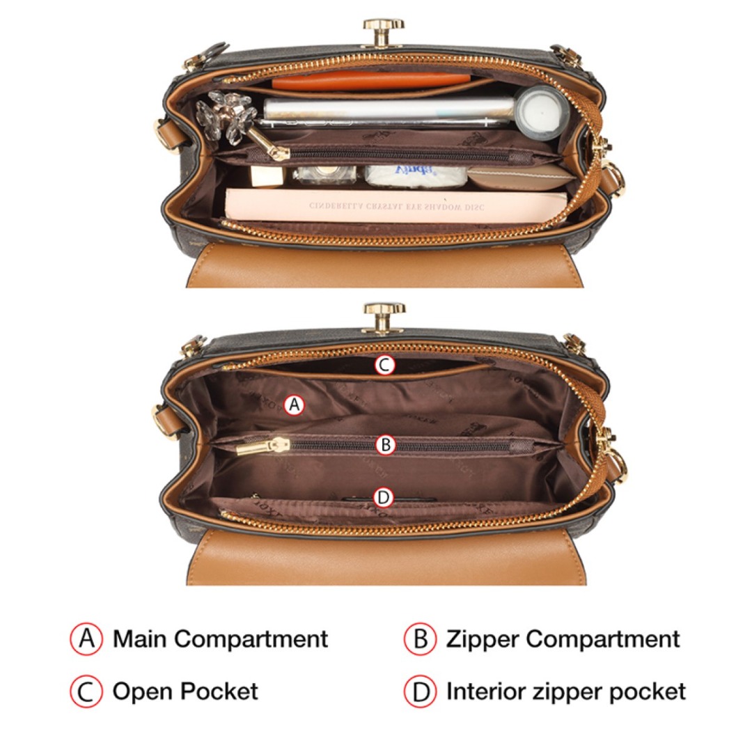 Δομή – Τσάντα: 1 θήκη με φερμουάρ, 2 εσωτερική ανοιχτή τσέπη, 1 εσωτερική τσέπη με φερμουάρ και 1 στο πίσω μέρος.