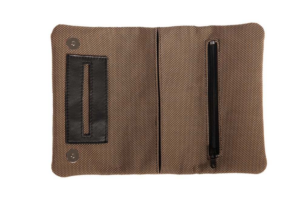 Cordura with leather fittings. Special characteristics : Waterproof, resistant to tears, long life.