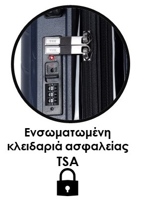 - Ενσωματωμένη κλειδαριά ασφαλείας TSA