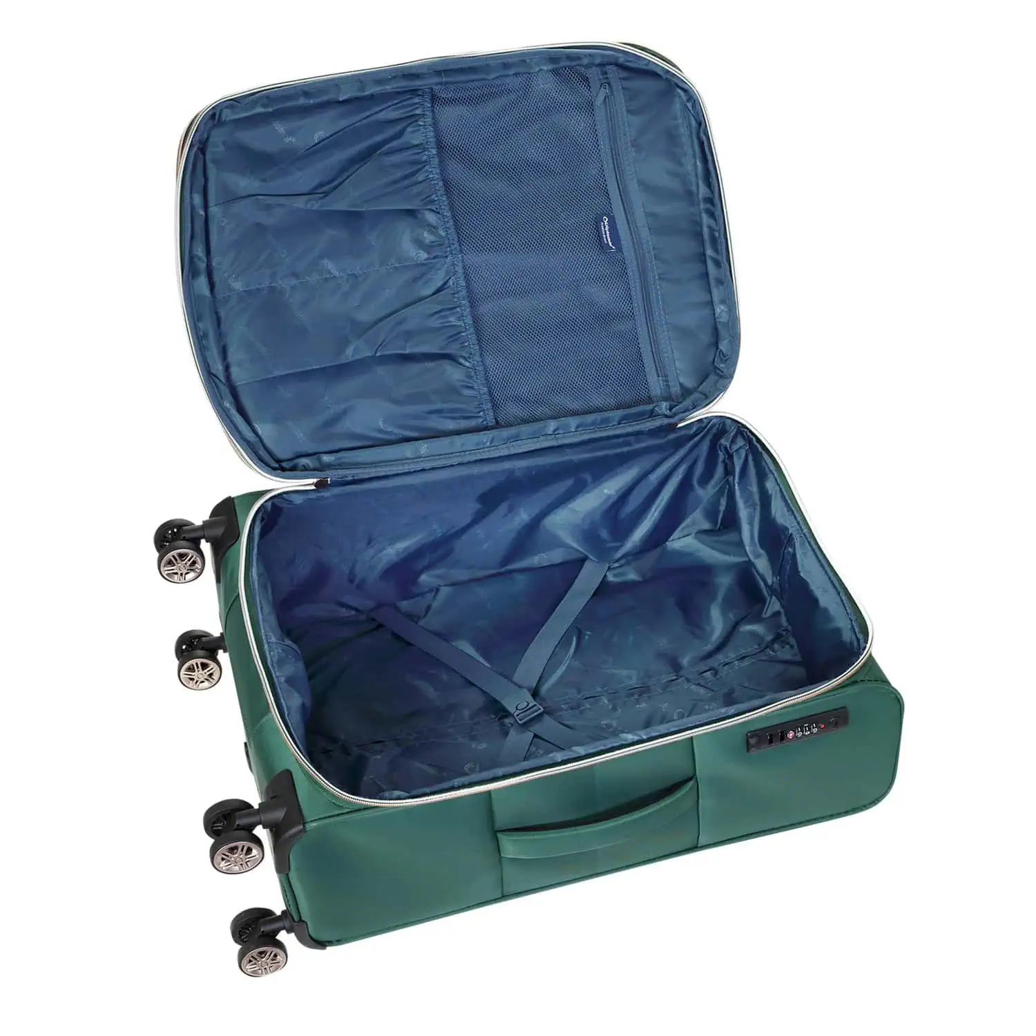 Υψηλής ποιότητας βαλίτσα με μοναδικό σχεδιασμό. Τα φερμουάρ και οι μηχανισμοι είναι σε απόχρωση ροζ χρυσό. Διαθέτει 4 ενισχυμένες διπλές ρόδες για άνετη κύλιση. Έχει χωνευτή TSA κλειδαριά 3ψηφιου συνδυασμού και ενισχυμένο αντικλεπτικό φερμουάρ που προστατεύει από προσπάθεια παραβίασης